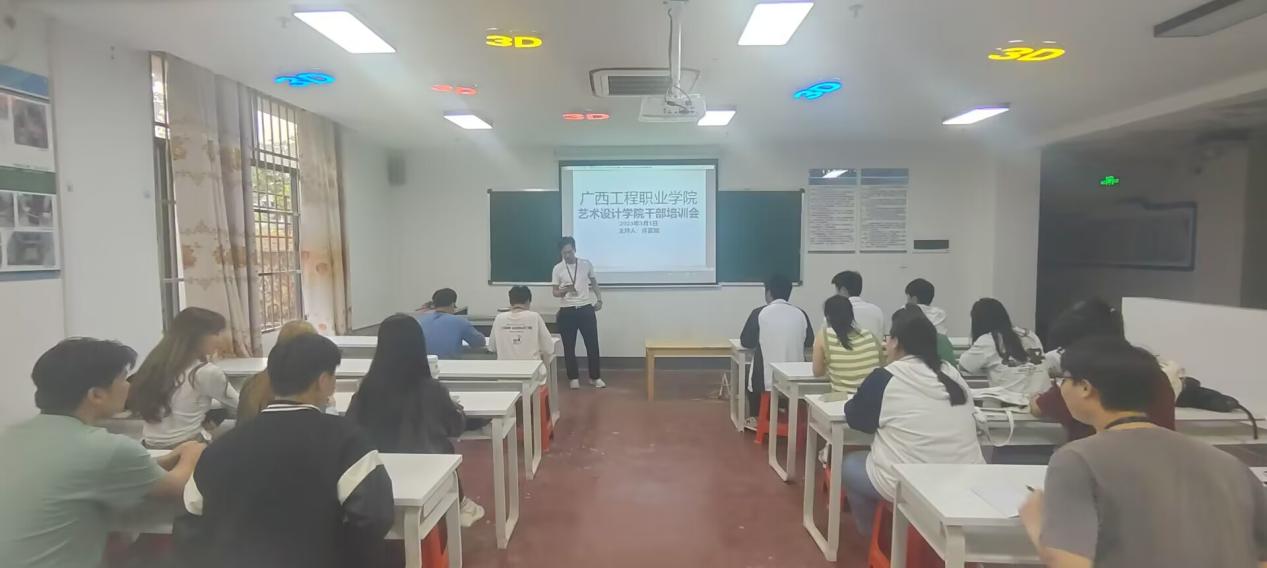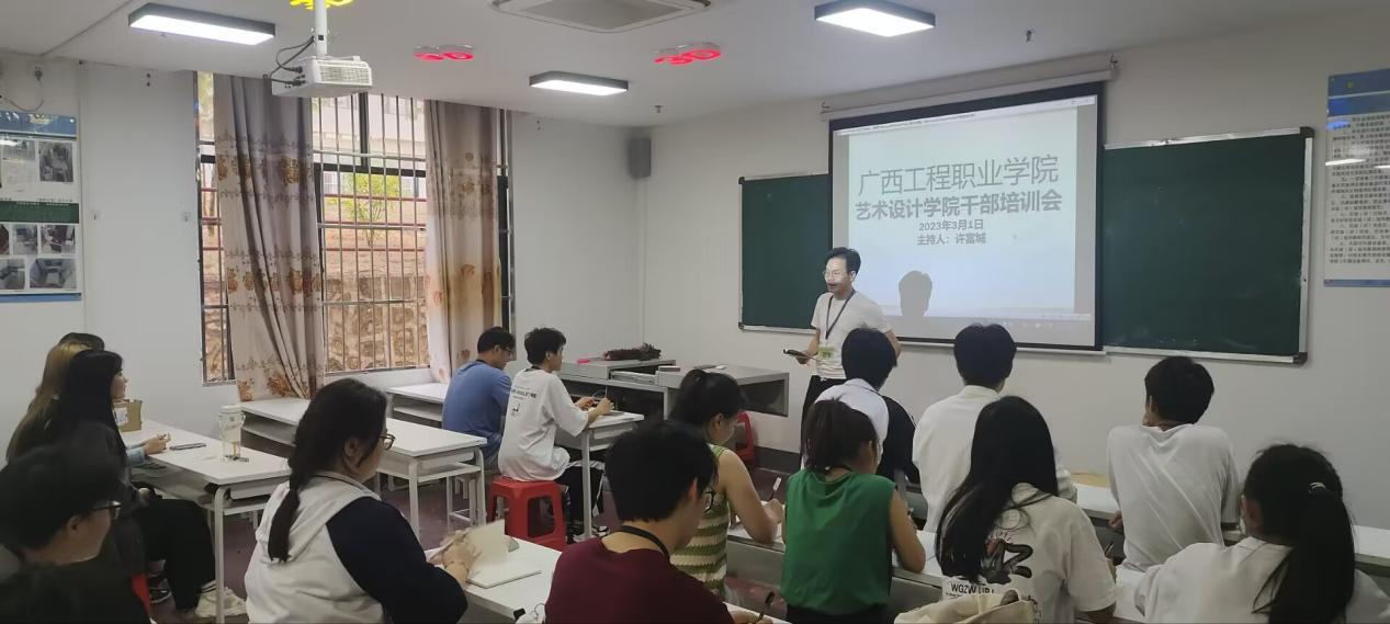为进一步提高学生干部的素质和能力,有效的开展学生会工作,培养一支工作能力强、思想素质高的学生干部队伍,保证学生会工作的积极性,充分发挥学生的主体作用。艺术设计学院于2023年3月17日下午六点,在设计楼一楼召开了干部培训会。此次会议由艺术设计学院学生科科长、分团委书记许富城主讲,艺术设计学院学生会干部参与此次会议。
