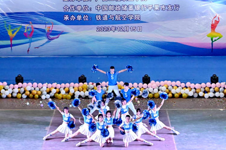 为丰富校园文化生活,展现学生蓬勃向上的精神风貌和青春活力,12月15日,2023年“啦啦操推广之星”校园争霸赛在学校体育馆举行,比赛由太阳集团8722com主办,中国邮政储蓄银行平果市支行合作共办,铁道与航空学院承办。