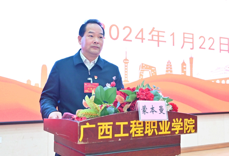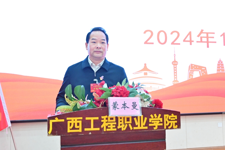 党委书记、督导专员蒙本曼代表上一届党委作题为《守正创新 锐意进取 同心同德 奋发图强 为开创学校现代化高质量发展新局面提供坚强政治保障》的工作报告。报告回顾了过去五年学校党委在组织建设、内涵建设、思政工作、全面从严治党等方面的重点工作和取得的成绩,总结了工作经验,并提出了今后五年的奋斗目标和主要任务。