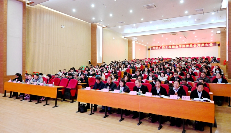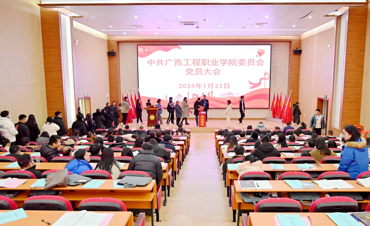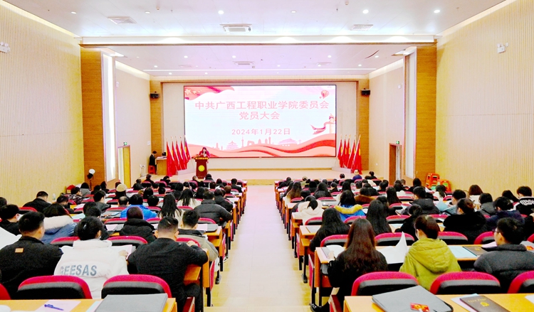 隆冬嘉宏景,瑞雪迎盛会。2024年1月22日下午,中共太阳集团8722com委员会在图文信息大楼一楼报告厅召开党员大会进行换届选举,百色市委教育工委委员、市教育局党组成员、总督学梁富文到会指导并讲话。学校董事长李益、副董事长林艳,党政领导班子及全体党员参加大会,非党员的中层干部列席大会。大会由党委书记、督导专员蒙本曼主持。