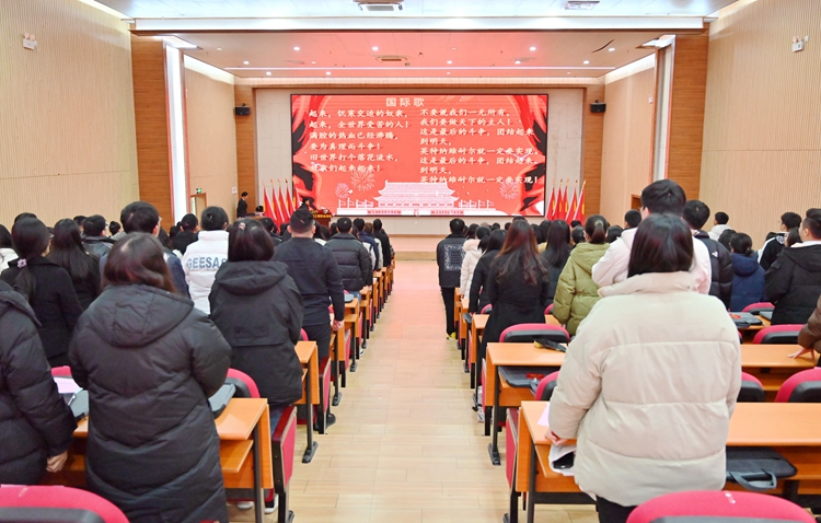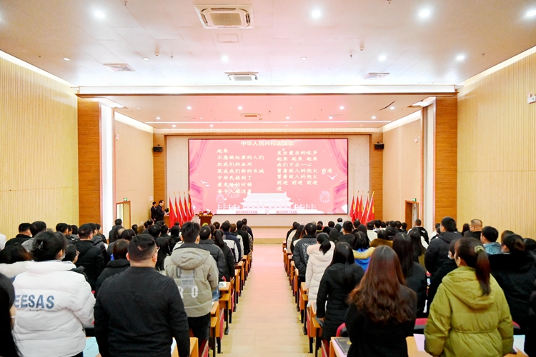 大会在庄严的《中华人民共和国国歌》中拉开帷幕,全体党员庄重肃立,齐唱国歌。