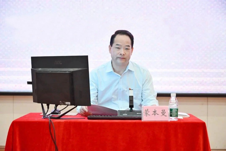 图为党委书记、政府督导专员蒙本曼作题为《常学常新,常悟常进》的专题培训