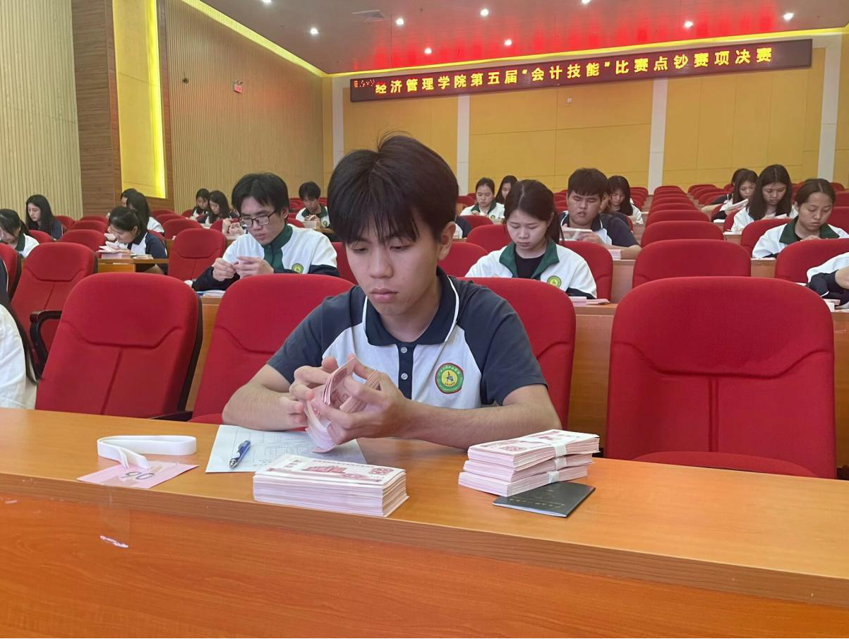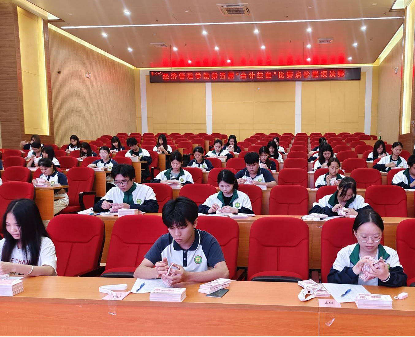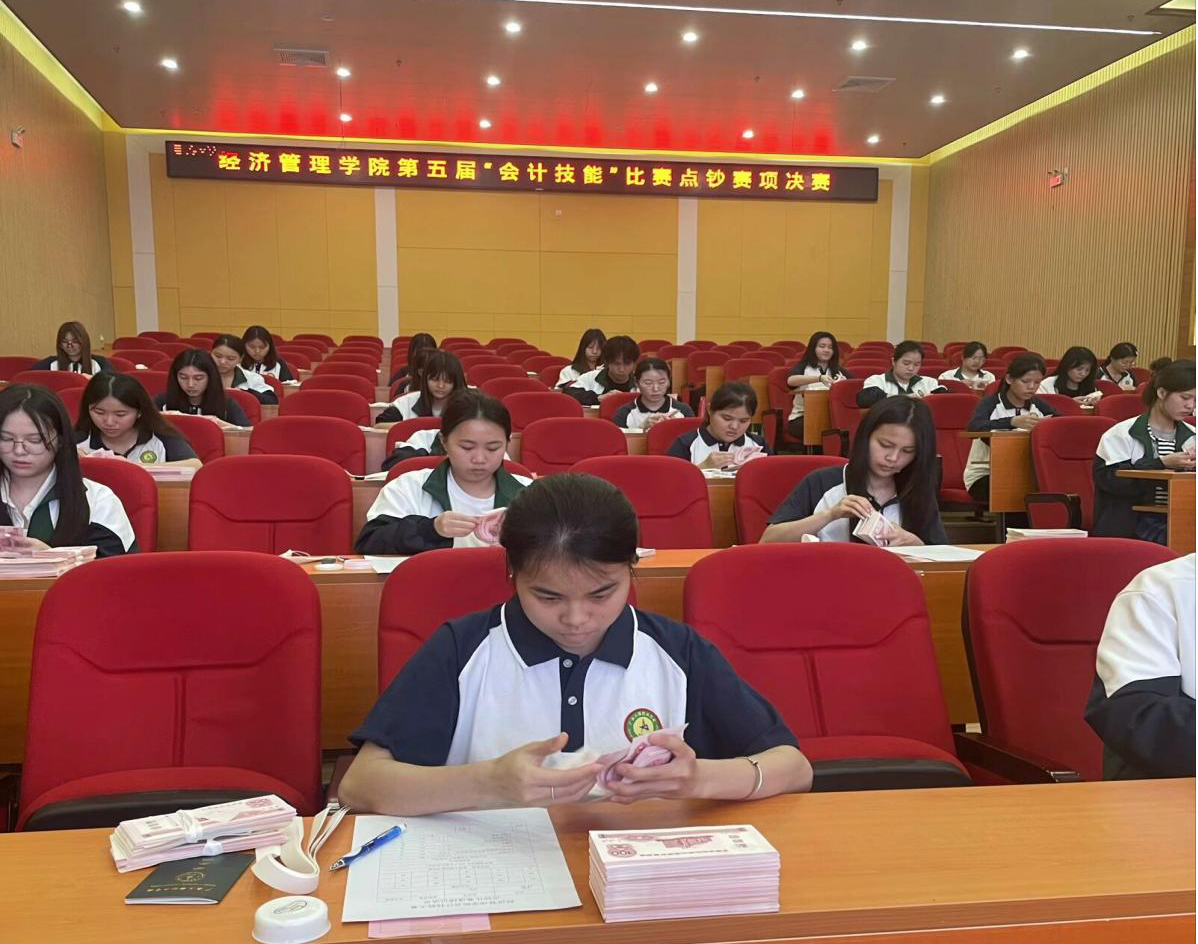 在数字经济与传统文化交融共生的时代背景下,经济管理学院于2025年3月25日成功举办第五届会计技能大赛。本届赛事以”赛出水平,展现风采,铸就会计人才”为主题,在图文信息大楼五楼、经管304实训室及第二教学楼多个赛场同步展开,设置点钞、翻打传票、珠算(非遗)、电算小能手四大竞赛单元,构建起传统技艺与现代技术交相辉映的育人平台。