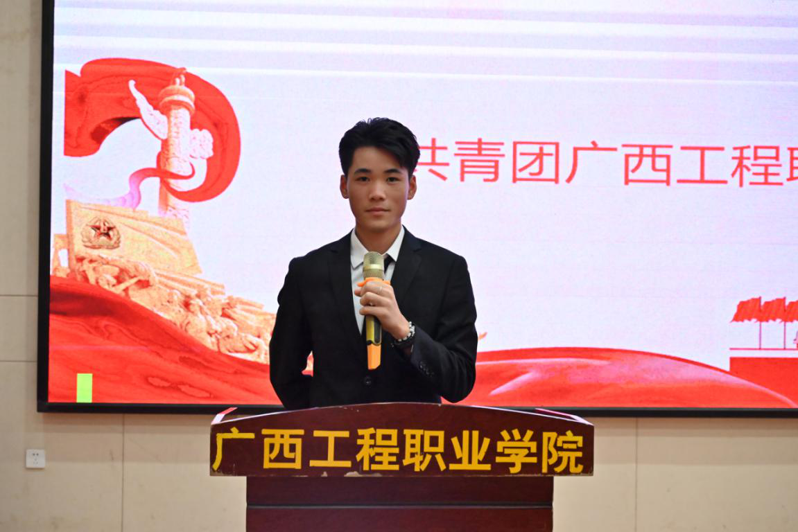 新当选经济管理学院第十八届学生会主席团成员莫其炅宣读第十八届学生代表大会筹备委员会发出的倡议书,呼吁同学弘扬学校工匠精神、践行校训,认真肩负振兴祖国重任,要从胸怀理想坚定信念、勤奋学习追求真知两方面,将个人发展与国家、社会、学校的发展融合,开创工作的新局面,为国家的繁荣发展贡献智慧和力量!