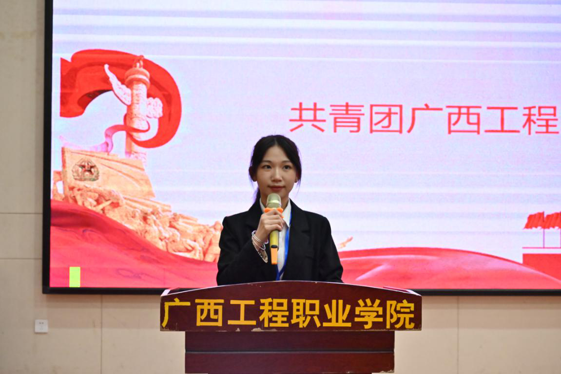 大会在庄严的国歌声中拉开帷幕,激昂的旋律传递着经管学子的使命担当。经济管理学院党支部书记、院长覃清香、经济管理学院分团委书记谢彩英以及学院全体辅导员出席大会,学院各班级共130名学生代表参加大会。大会由经济管理学院分团委书记谢彩英主持。