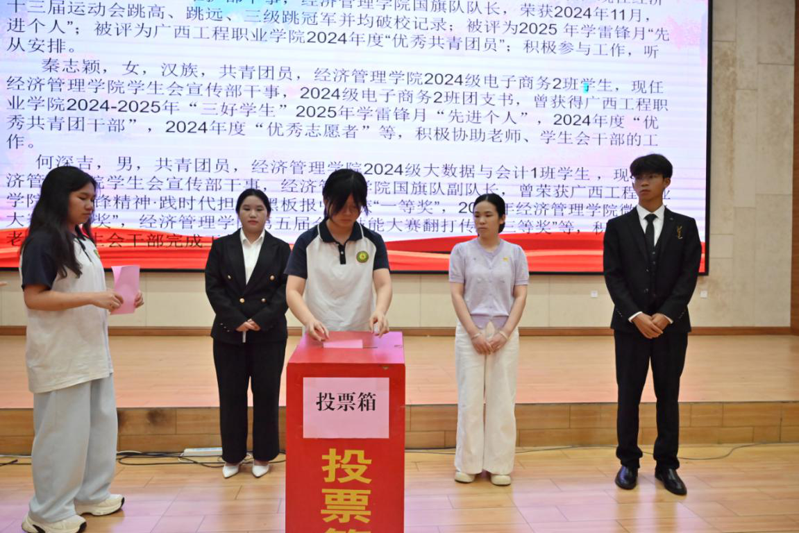 在紧张有序的氛围中,参会代表认真履行职责,投出神圣一票,选举产生经济管理学院第十八届学生会主席团成员,整个选举过程透明公开,彰显民主精神,为学生会注入新鲜血液,开启学生工作新篇章。