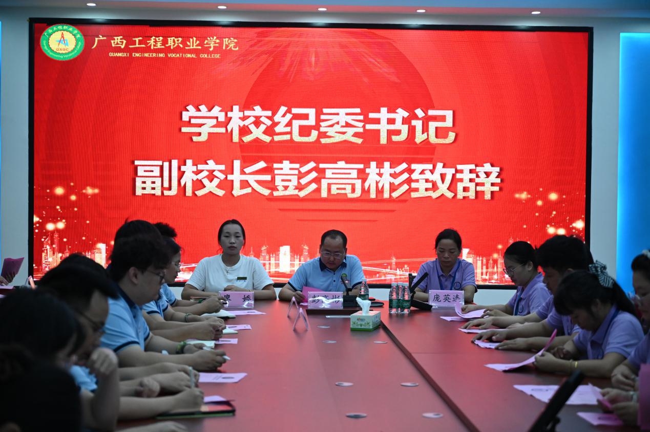 大会在庄严肃穆的国歌声中拉开帷幕。学校纪委书记、副校长彭高彬致辞,首先,他对铁道与航空学院取得的成绩表示了肯定,铁道与航空学院过去一年在教育教学改革、学生全面发展、产教融合及师德师风建设上取得显著成绩,如申报多项思政示范课程、通过三维模式提升学生能力、深入企业访企拓岗、涌现爱岗敬业教师典型等。同时他强调,当前职业教育处于关键发展期,国家出台多项政策推动其高质量发展。他希望全体老师将教育家精神转化为思想自觉、行动自觉,积极投身教育强国建设实践。