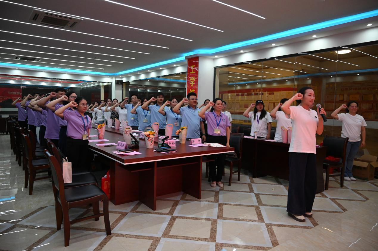 在学院党支部书记、副院长廖娇的带领下,全体教师举起右拳庄严宣誓:"忠诚党的教育事业,履行教书育人职责,争做有理想信念、有道德情操、有扎实学识、有仁爱之心的党和人民满意的好老师!"誓言铿锵,彰显了教师队伍立德树人的坚定决心。