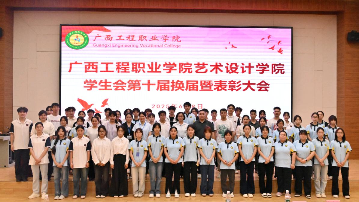 2025年6月8日下午,艺术设计学院第十届学生会换届暨表彰大会在图文信息大楼三楼学术报告厅顺利召开。出席本次大会的有艺术设计学院党支部书记兼院长覃凤姣、党支部副书记赵志辉、分团委书记李东英、办公室主任陈国昇、学院全体辅导员、学生会代表、第十届团学干部以及新当选的第十一届团学干部。