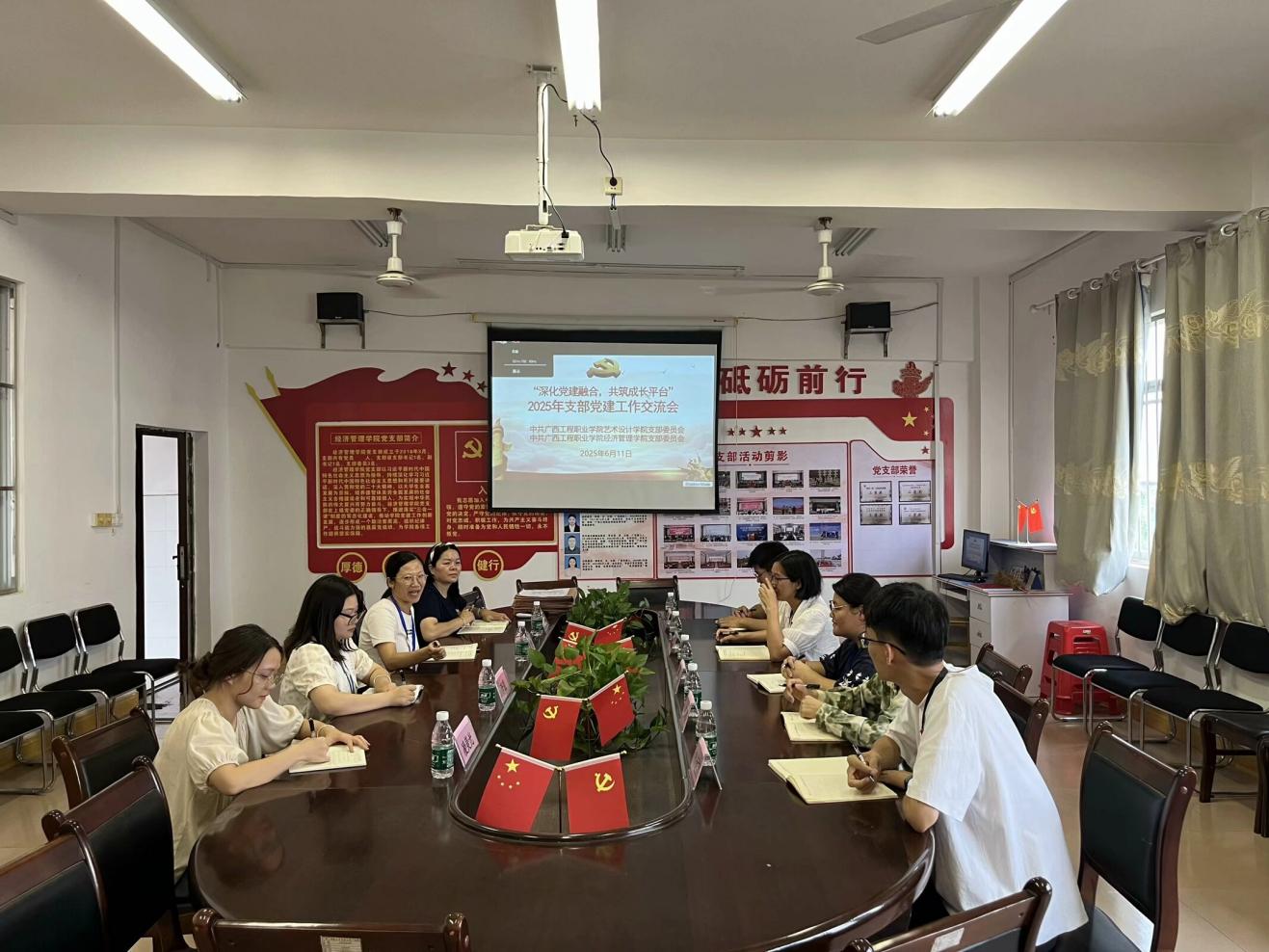 2025年6月11日下午,为深入学习贯彻党的二十大和党的二十届三中全会精神,进一步加强基层党组织建设,促进党建工作经验交流,艺术设计学院党支部与经济管理学院党支部携手开展了党建工作交流会。双方党支部委员共同参与了此次活动,活动涵盖实地参观、经验分享和座谈交流等环节,旨在共同探讨党建引领下的专业特色发展路径。