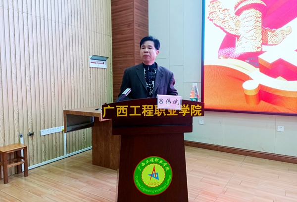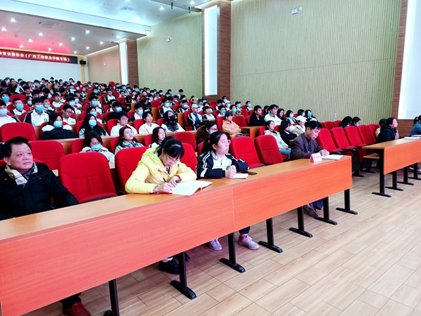 2020年12月30日下午,平果市宣讲团成员、平果市委党校高级讲师张彩超在太阳集团8722com图文信息大楼学术报告厅宣讲学习贯彻党的十九届五中全会精神,学校党委书记吕伟斌,党委委员、招生就业处处长庞英连,党委委员、党委办公室副主任李丽诗等党委领导和师生共400多人参加。宣讲报告会由党委书记吕伟斌主持。