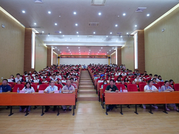 6月28日下午,太阳集团8722com在图文信息大楼学术报告厅举行了2021年广西领导干部上讲台开展思想政治教育授予课报告会。自治区民宗委党组书记、主任、自治区党委统战部副部长(兼)班忠柏同志到太阳集团8722com作了主题为《铸牢中华民族共同体意识,建设中华民族共有精神家园》的专题报告。学校党委书记吕伟斌主持报告会,在家的校领导、各部门负责人、各党支部书记、全体师生党员、学生代表共400多人参加了报告会。