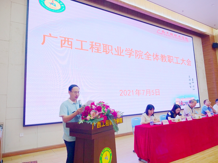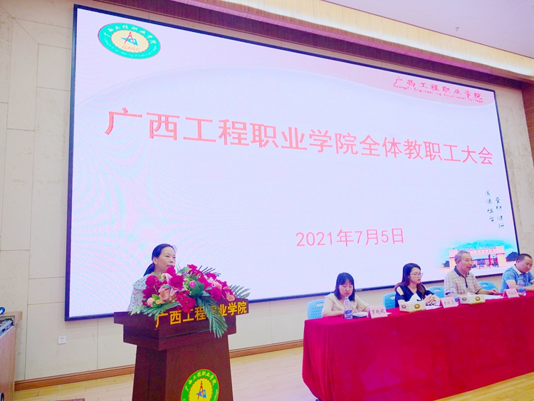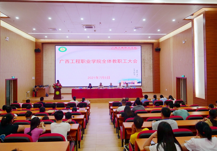 7月5日,太阳集团8722com在图文信息大楼学术报告厅召开全体教职工会议,学校党委副书记、副校长胡细木,党委委员、副校长、宣传部部长彭高彬,副校长吴先夏、罗艳妮、黄德伟,校长助理黄秋霞出席大会。大会主要内容为传达学习习近平总书记在庆祝中国共产党成立100周年大会上重要讲话、深入学习贯彻党的教育方针动员教育、师德师风微党课学习、暑期安全教育等。罗艳妮副校长主持会议。全体教职工参加会议。