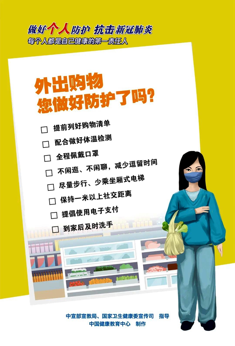 做好个人防护,抗击新冠肺炎。在家中、办公场所、外出购物、施工作业时,在乘坐出租车、地铁、飞机、列车和长途汽车时,如何做好个人防护?大家一起来看中国健康教育中心制作的海报↓↓↓