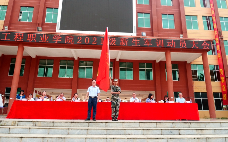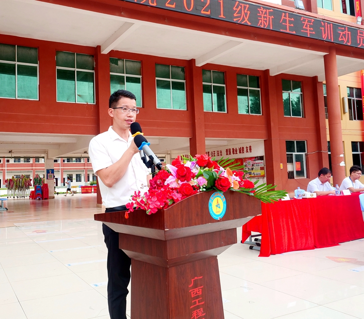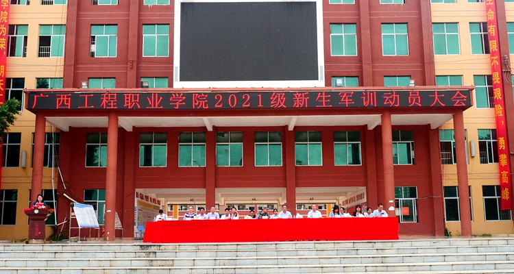 8月24日上午,我院2021级第一批新生军训动员大会在鲁班广场举行。学校执行校长、纪委书记李益,党委副书记胡细木,副校长林艳、彭高彬、林萌、吴先夏、罗艳妮、黄德伟等校级领导,广西绿盾国防教育基地主任陆俊余,二级学院及相关部门负责人出席动员会,部分教师代表及2021级新生参加了本次动员大会。动员大会由校长助理黄秋霞主持。