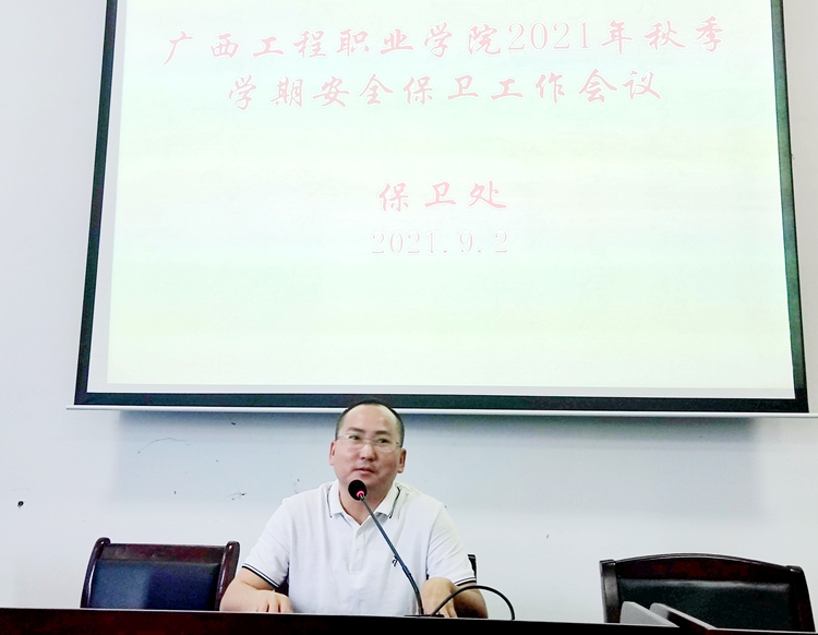 按照学校年度工作总体安排部署,为确保广大师生的生命安全,落实疫情防控常态化条件下的各项安保措施,确保校园的安全稳定。9月2日下午,保卫处在图书馆学术报告厅召开2021年秋季学期安全保卫工作会议,校党委委员、副校长彭高彬出席会议并作重要讲话,全体安保人员参加了会议。会议由保卫处李捷副处长主持。