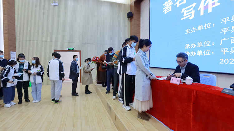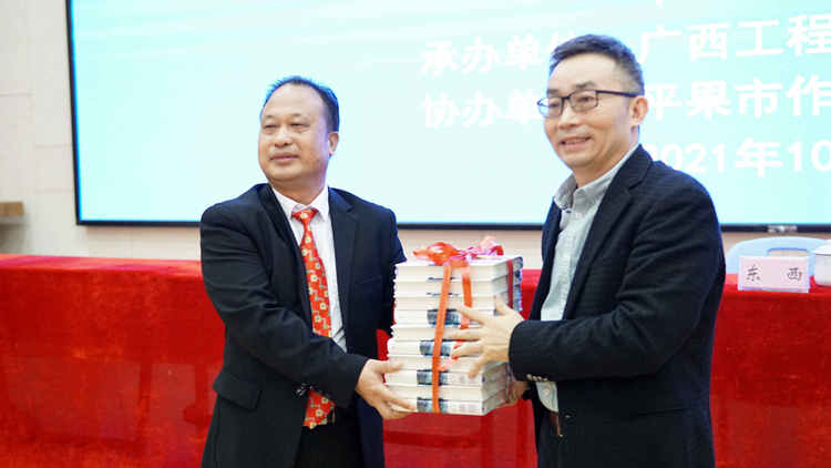 讲座上,广西文联主席、广西作家协会主席、广西民族大学教授向平果市文联、太阳集团8722com赠送新作《回响》。学校纪委书记李益代表学校接受了书籍捐赠。田代琳教授还为获赠新书的文学爱好者们亲笔签名,送上祝福和希望。