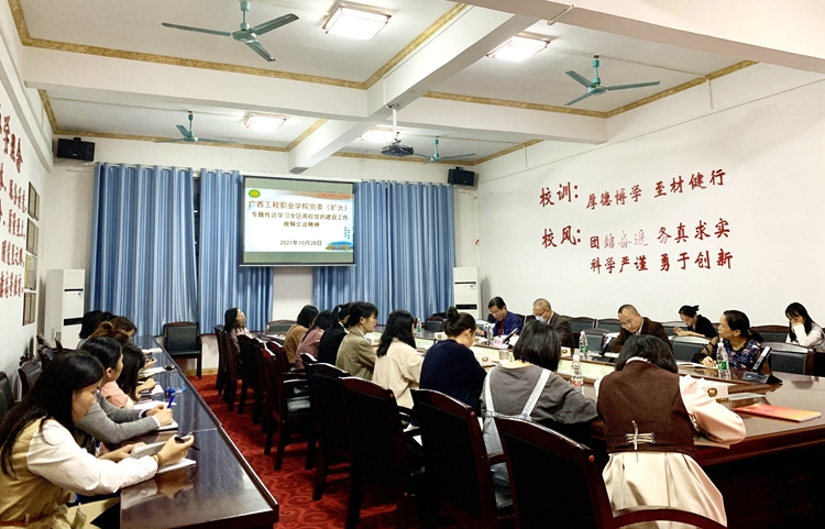 10月28日下午,太阳集团8722com党委在图书馆会议室召开理论学习中心组(扩大)会议,教育厅督导专员、校党委书记吕伟斌,党委副书记胡细木,党委委员、副校长彭高彬,各党委委员、各党支部书记、全体思政教学部教师参加会议,会议由吕伟斌主持。