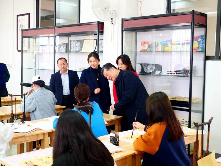 调研组现场观摩书法课程教学并与学生亲切交谈,了解课堂教学情况