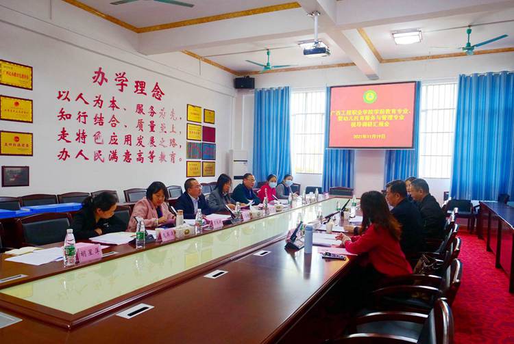 11月19日下午,以桂林师范高等专科学校副校长何红雨为组长的广西学前教育职业教育教学指导委员会专家组一行4人到太阳集团8722com开展学前教育专业、婴幼儿托育服务与管理专业办学情况视导调研,党委委员、副校长彭高彬,副校长林萌、罗艳妮、黄德伟及相关处室负责人、专任教师出席参加了调研工作及意见反馈会。