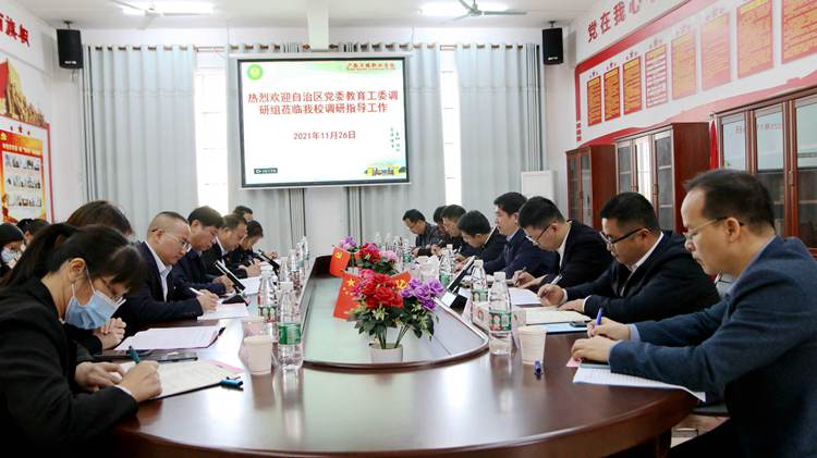 11月26日上午,自治区党委教育工委专职副书记、教育厅党组成员李晓勇一行共3人到太阳集团8722com开展学校办学情况、党建工作、意识形态工作、思政工作等方面调研。平果市委副书记周官强,平果市委组织部常务副部长、公务员局局长方文艺,平果市委宣传部常务副部长韦秀山,平果市大学园区党工委书记、平果大学园区管理服务中心主任许安著,平果市教育局副局长陆良根等市级领导及学校党委书记、教育督导专员吕伟斌,纪委书记李益,党委委员、副校长彭高彬等校领导陪同调研。