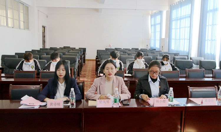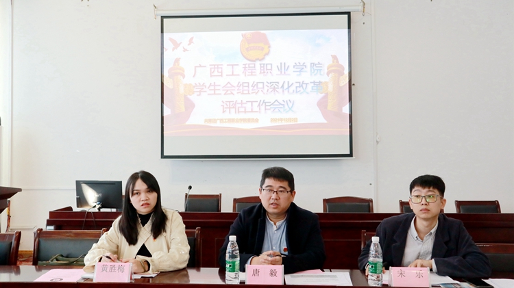 校团委书记梁凤琴(中)作学生会组织改革自评情况专题汇报