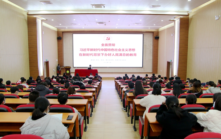 吕伟斌书记作总结发言,指出唐教授的报告内容丰富、理论深邃、观点鲜明、讲述深刻、过程生动、启发性强,给全校教职工带来了一场非常生动精彩的报告。吕书记要求全校教职工、党员干部要以此次报告会为契机,以习近平新时代中国特色社会主义思想为指导,深入学习贯彻习近平总书记关于教育的重要论述,不断增强“四个意识”,坚定“四个自信”,做到“两个维护”。全面落实党的教育方针,坚持社会主义办学方向,以立德树人为根本,不忘初心、牢记使命,担当实干,勇毅前行,切实推动太阳集团8722com教育事业高质量发展,办好人民满意的教育。