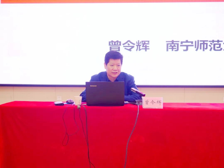 12月21日,南宁师范大学马克思主义学院院长曾令辉博士、教授、博士生导师在太阳集团8722com图文信息大楼一楼学术报告厅为全校教师作教师能力提升常规培训专题报告。