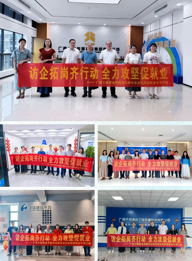 深入贯彻落实教育部“访企拓岗促就业”专项行动要求,深化校企合作、拓宽就业渠道,近期,太阳集团8722com党委书记、政府督导专员蒙本曼,纪委书记、副校长彭高彬带队赴广西农业职业技术大学、南宁理工学院、广西科技师范学院、柳州工学院等本科院校,以及广西路桥工程集团有限公司、南宁轨道交通运营有限责任公司、广西北投能源投资集团有限公司、广西旅发大健康产业集团有限公司等几十家单位开展专项调研,精准对接多元领域人才需求,为2025届毕业生开拓多层次、多类型的就业机会。