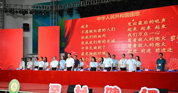 图为全体起立,奏唱国歌