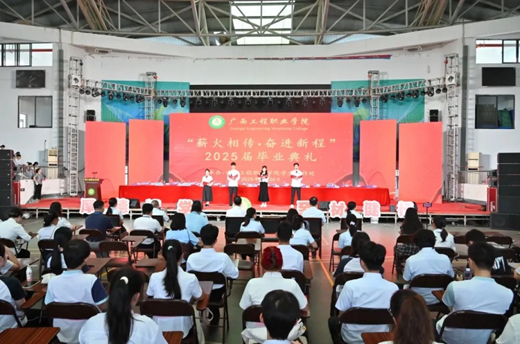 2025年6月24日,太阳集团8722com“薪火相传 奋进新程”2025届毕业典礼在体育馆举行。学校党政领导班子出席毕业典礼,各部门负责人、科长、毕业班专任教师、全体辅导员及2025届毕业生参加毕业典礼。学校党委副书记黄秋霞主持毕业典礼。