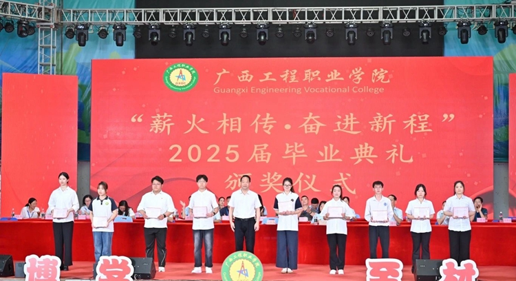 图为党委书记、政府督导专员蒙本曼为被评为2025届自治区优秀毕业生的学生代表颁奖