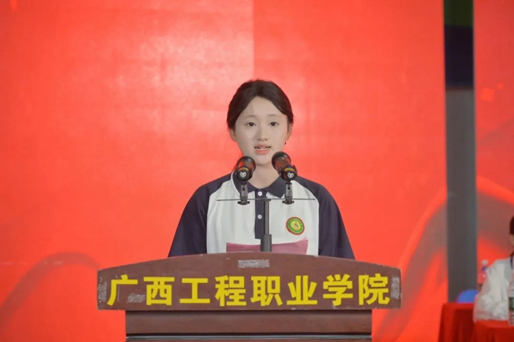 经济管理学院教师覃丽君作为教师代表发言。她回顾三年来,同学们从初入校园时青涩模样,到课堂专注学习、实训团结协作、赛场奋力拼搏,完成了从懵懂少年到自信青年的蜕变。临别之际,嘱托毕业生要保持热爱,勇敢追梦;脚踏实地,终身学习;心怀感恩,勇担责任。最后,覃老师表示母校永远是毕业生的坚强后盾,祝愿大家以梦为马,前程似锦。