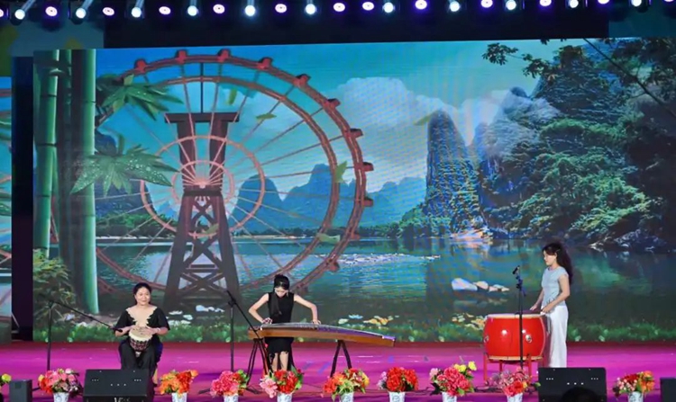 图为古筝非洲鼓合奏《瑶族舞曲》(表演者:教育学院 莫彬彬、黄丹妮等)