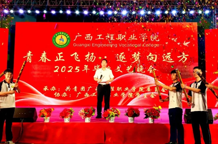 党委书记、督导专员蒙本曼,党委副书记、校长罗艳妮,党委副书记黄秋霞,纪委书记、副校长彭高彬,副校长黄德伟,副校长蒋茂丽,校长助理梁善雅等学校领导出席晚会现场,各部门负责人、全体辅导员及2025届毕业生到现场观看晚会。