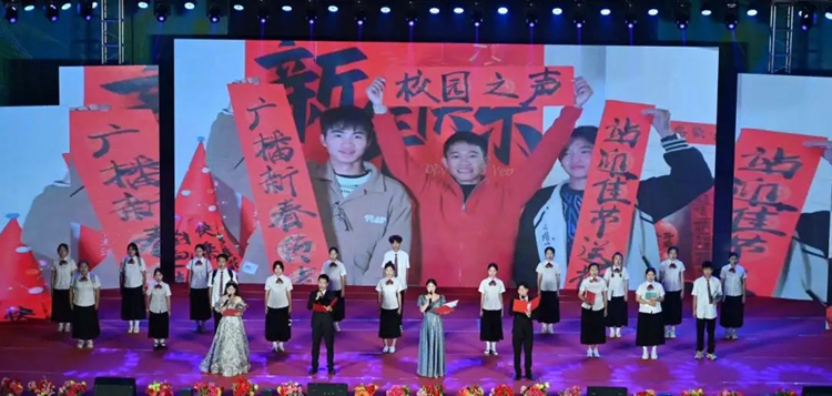 图为情景朗诵《青春飞扬·逐梦远航》(表演者:校园之声广播站 王华铭等)