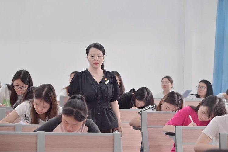 近日,我院2025年春季学期考试工作有序推进。为维护考试公平公正,营造良好的考风考纪,学校党委副书记黄秋霞带队巡考小组深入各考场进行期末考试巡查。