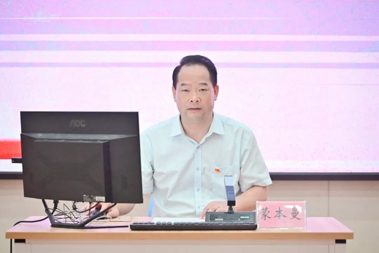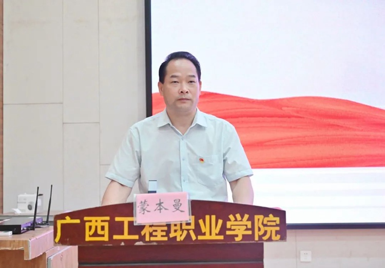 蒙本曼同志强调,让我们更加紧密地团结在以习近平同志为核心的党中央周围,高举中国特色社会主义伟大旗帜,深入学习贯彻习近平新时代中国特色社会主义思想及党的二十大和二十届二中、三中全会精神,深入学习贯彻习近平总书记关于党的建设的重要思想和关于广西工作论述的重要要求,以铸牢中华民族共同体意识为主线,学习先进榜样,凝聚干事创业的精气神、正能量,在攻坚克难上见真章,在担当作为中求实效,用担当和奉献为党的生日献礼,为谱写学校规范有序高质量发展新篇章贡献力量。