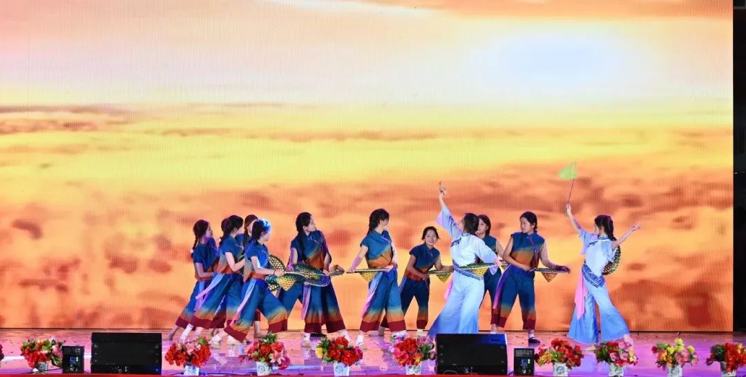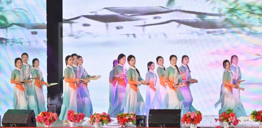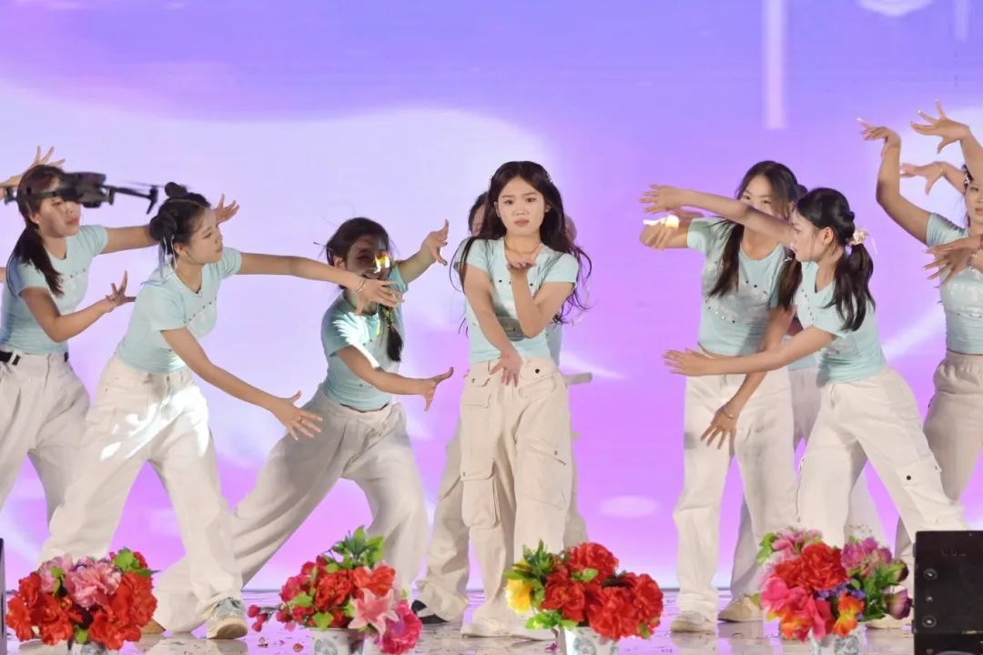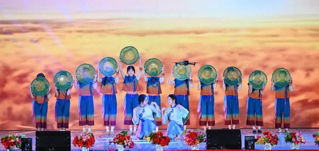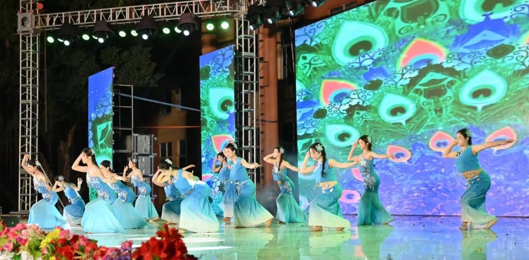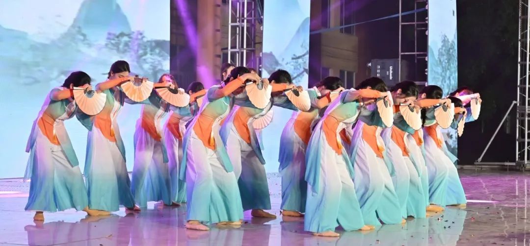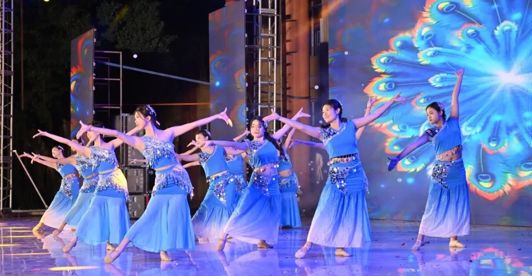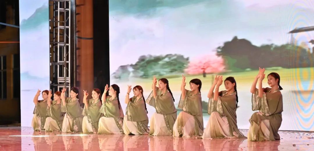 舞者们以婀娜身姿,勾勒出民族风情与校园精神交织的美妙画卷。她们宛如春日里破土而出的新芽,带着清新与灵动,在舞台上缓缓舒展。每一个动作都轻盈飘逸,仿佛是被春风轻拂过的柳枝,柔美而富有韵律