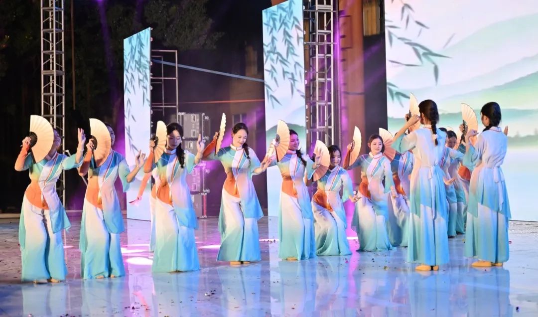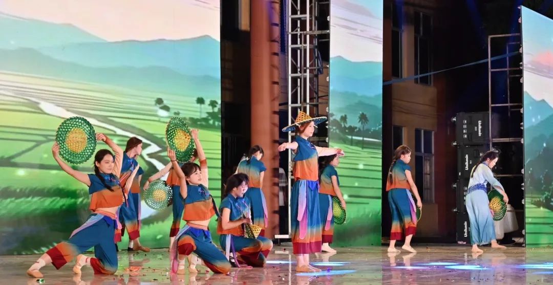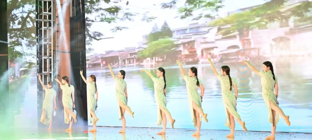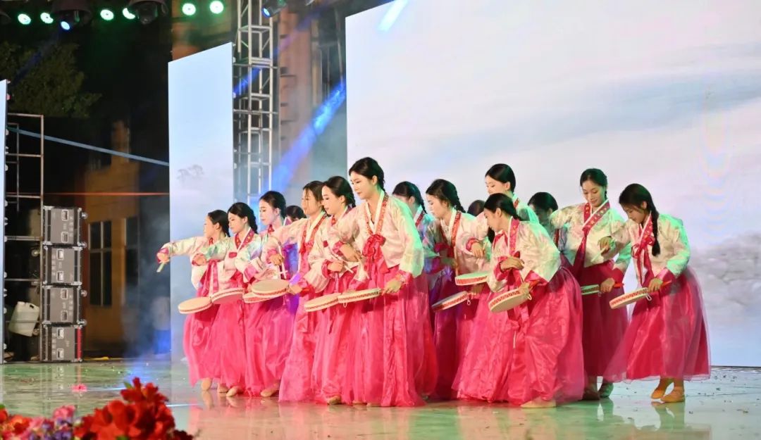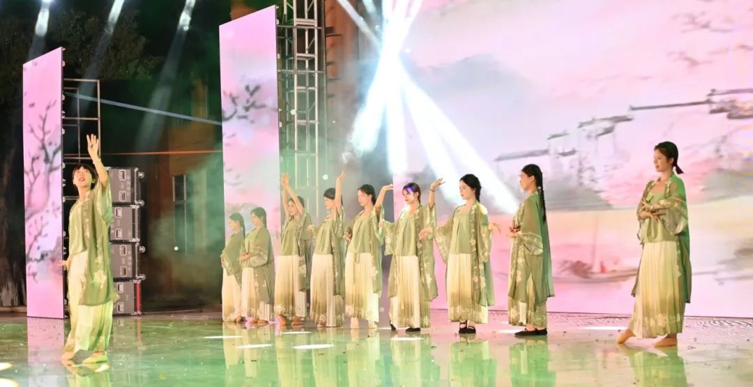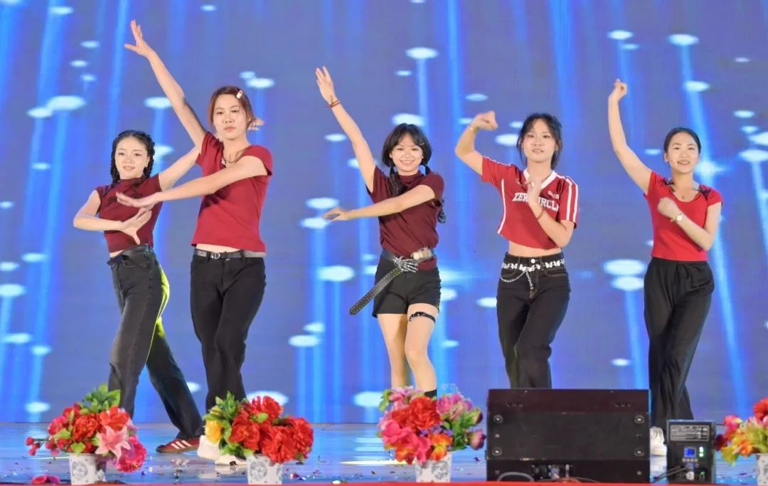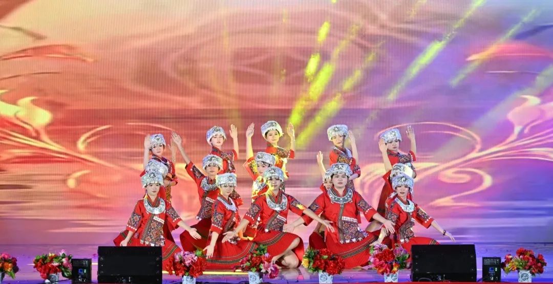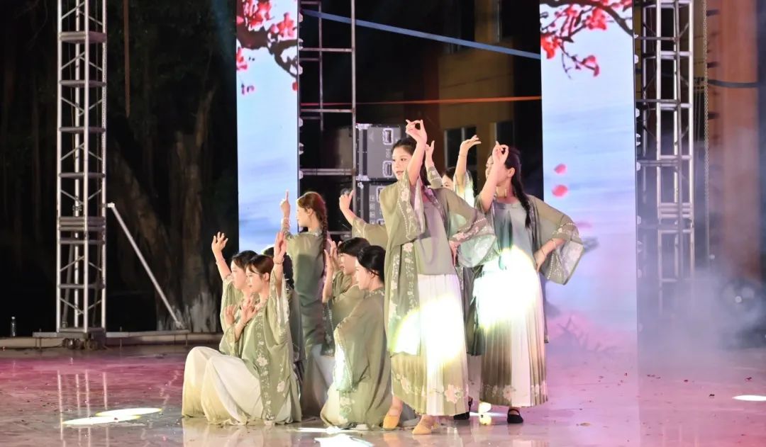 舞者们以婀娜身姿,勾勒出民族风情与校园精神交织的美妙画卷。她们宛如春日里破土而出的新芽,带着清新与灵动,在舞台上缓缓舒展。每一个动作都轻盈飘逸,仿佛是被春风轻拂过的柳枝,柔美而富有韵律
