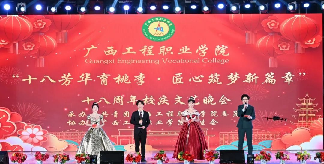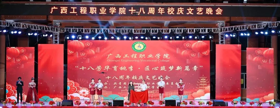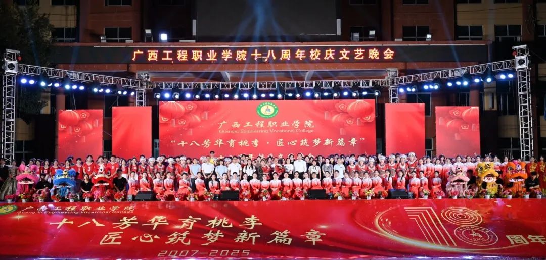 在党委书记、督导专员蒙本曼宣布我院2025年“十八芳华育桃李·匠心筑梦新篇章”18周年校庆文艺晚会正式开始后,烟花绽放,礼炮齐鸣,全场爆发出热烈的掌声和欢呼声,整个校园都沉浸在欢乐的海洋中。