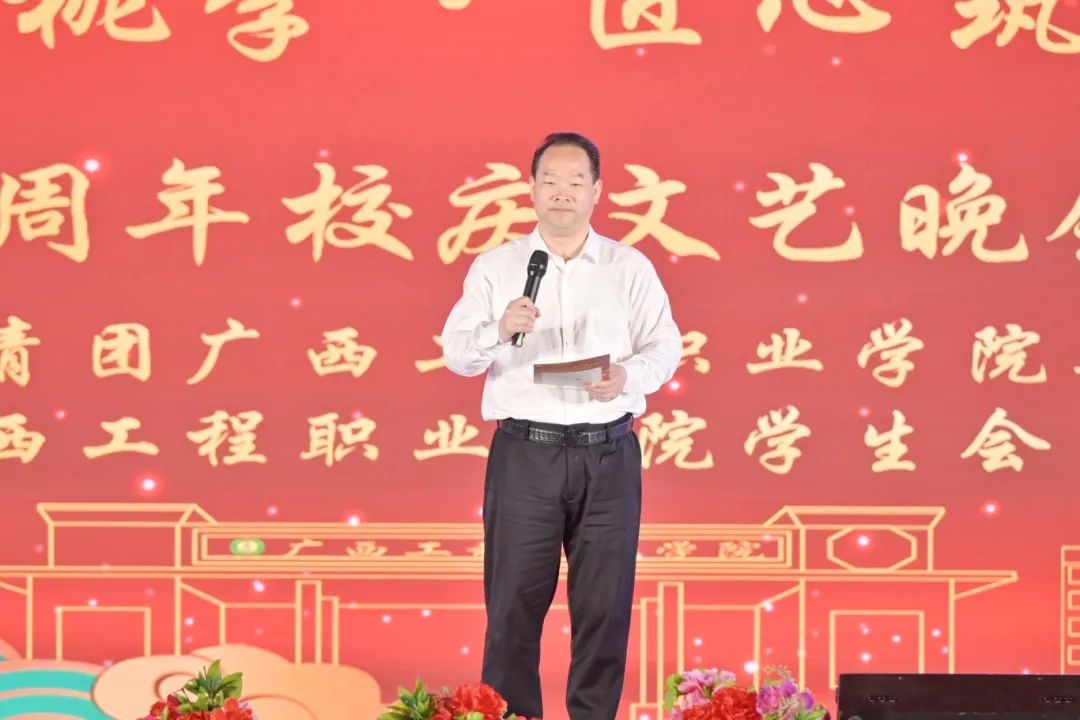 学校董事长李益,党委书记、督导专员蒙本曼,副董事长林艳,党委副书记、校长罗艳妮,党委副书记黄秋霞,纪委书记、副校长彭高彬,副校长黄德伟,副校长蒋茂丽,校长助理李明泽,校长助理梁善雅出席晚会,全体师生到现场观看校庆晚会。