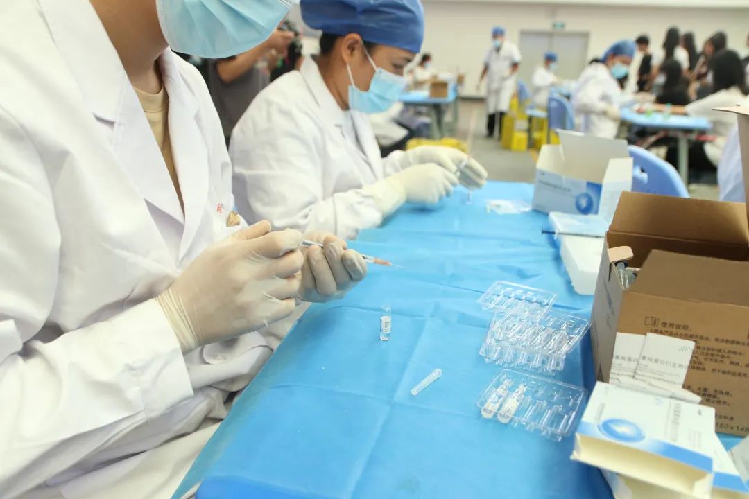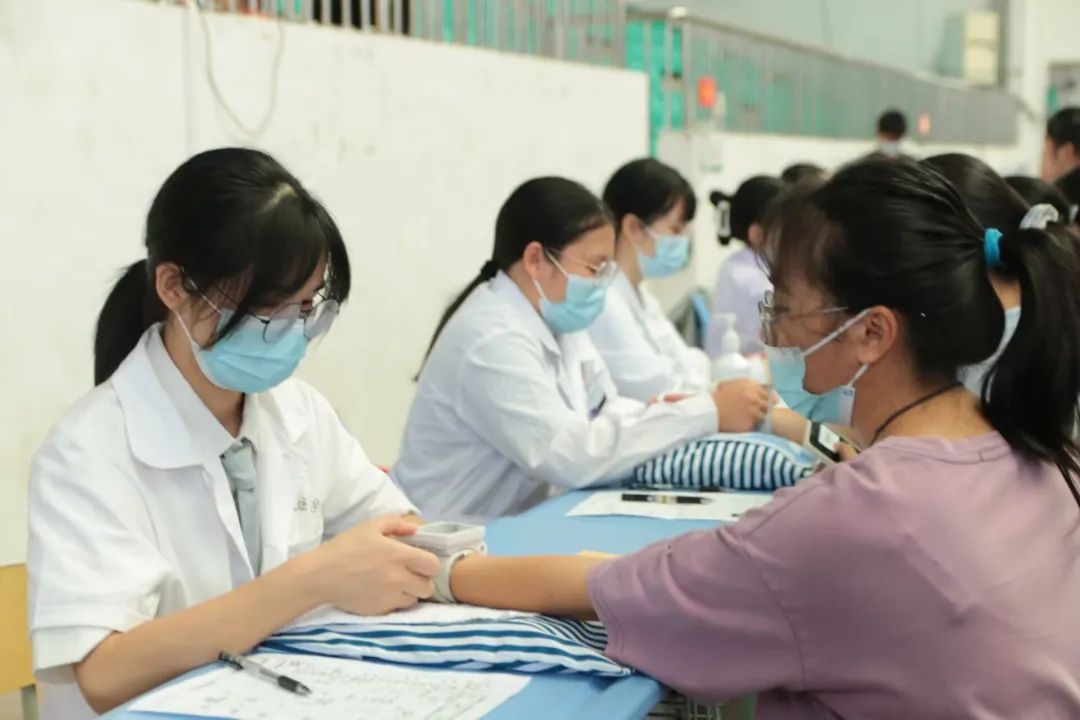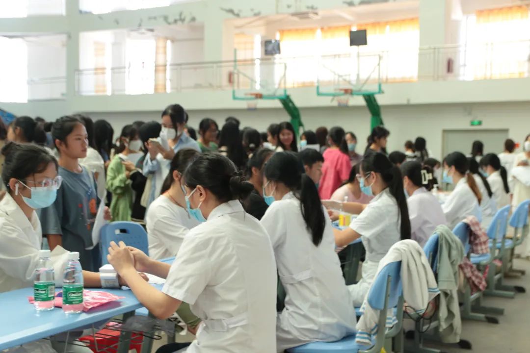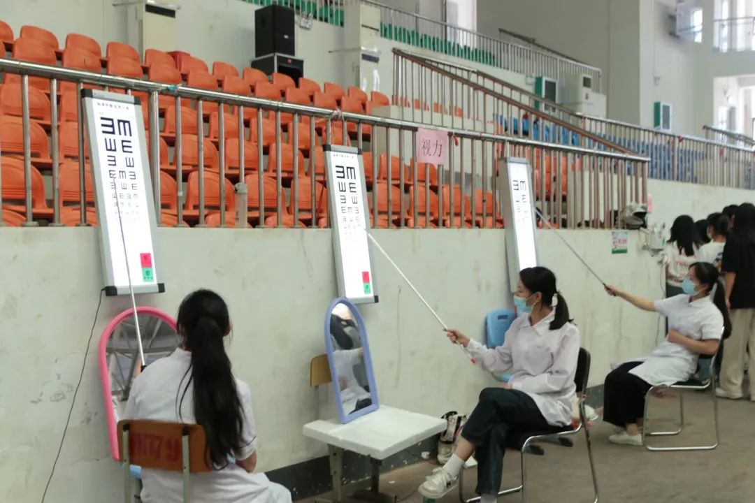 为了预防学生发生晕倒等的突发情况,太阳集团8722com同时在体检区设置了休息点,提供葡萄糖水为学生补充能量。