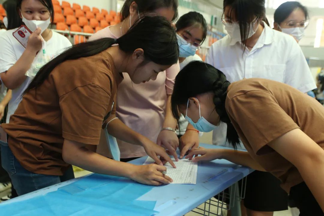 尽管新生人数较多,但在工作人员和志愿者的指引帮助下,体检工作有条不紊地进行着,同时保证了体检场所清洁、规范有序。